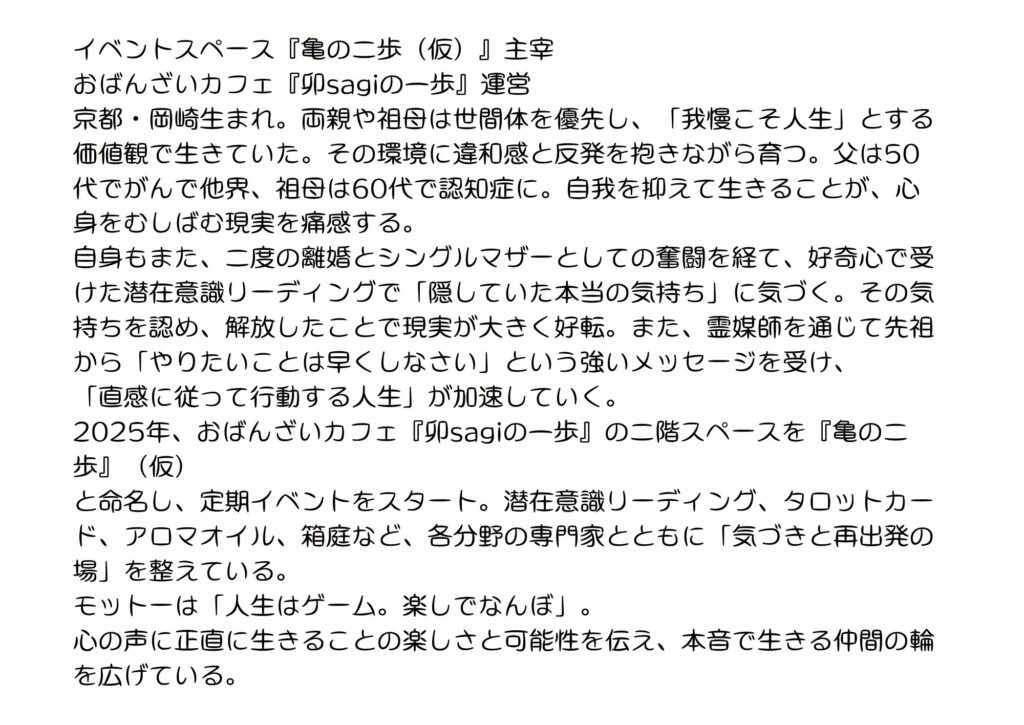 こちらは2020年ごろにまとめていただいたプロフィールです、もちろん生まれ等々は変わりませんがやりたいこと